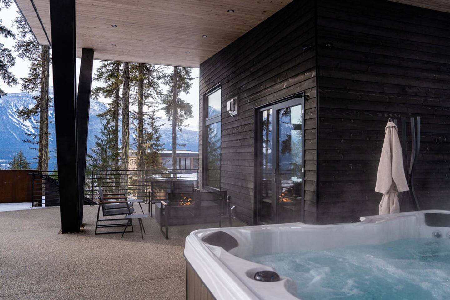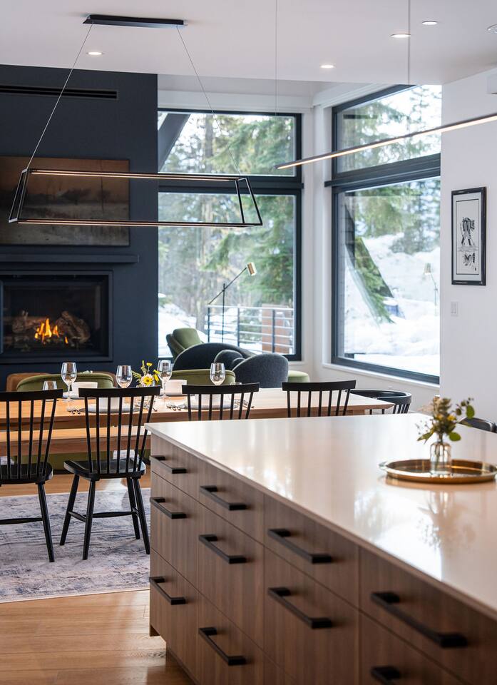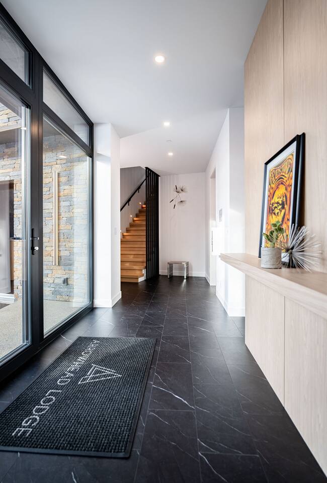 BEDROOM SUITES Luxurious Retreats: - Four primary bedrooms with flexible bed arrangements (choice of two twin beds or one king bed). - Ensuite bathrooms with rain style and handheld faucets, double sink vanities. - Smart TVs, blackout blinds, and individual climate controls for personalized comfort. FLEX ROOM Versatile Accommodations: - Flexibility with two bunk beds or a desk/work space. - Ensuite bathroom with rain style and handheld faucets. - Comfortable seating and smart TV for relaxation. MAIN FLOOR SUITE / "RECOVERY ROOM" Exclusive Space: - Optional queen-sized murphy bed for additional sleeping arrangements. - Full ensuite bathroom with rain style and handheld faucets. - Kitchenette with dishwasher, coffee maker, beverage fridge, and sink for added convenience. - This suite can be locked off from the main house, if required. KITCHEN Gourmet Features: - High-end gas oven with six burners for versatile cooking. - Spacious fridge/freezer, dishwasher, and a large sink for easy clean-up. - The island, with seating for four, encourages social cooking experiences. PANTRY PREP KITCHEN Additional Culinary Space: - Comprehensive prep kitchen with ice machine, additional fridge/freezer, dishwasher, sink, and essential appliances. - Perfect for handling overflow during large gatherings. DINING AREA Social Hub: - Custom table with seating for ten in the dining area. - Additional seating for four at the island, accommodating a total of fourteen guests comfortably. LOUNGE AREA / LIVING ROOM Entertainment Center: - Cozy up by the gas fireplace in the living room. - Smart TV with cable or streaming options for entertainment. - A well-appointed seating arrangement for socializing. MUDROOM / LAUNDRY ROOM: Gear Maintenance: - Boot and mitten dryer for ready-to-go outdoor gear. - Ample hanging space for wet clothes and equipment. - Utility/laundry sink for practical needs. - Laundry Efficiency; two dryers and two washing machines for quick laundry turnaround. - Half bathroom for added convenience. GARAGE Vehicle Amenities: - Heated 3-car garage for comfort and convenience. - Future-focused with two EV electric charging outlets (bring your own charger) for environmentally conscious guests. - Dedicated ski and snowboard rack/storage to keep gear organized. EXTERIOR Prime Location: - Perfect for winter sports enthusiasts, offering ski-in/ski-out access. - Situated on the prestigious Revelstoke Mountain Resort. Outdoor Entertainment: - Unwind in the hot tub and/or sauna for a relaxing après-ski experience. - Enjoy the fresh mountain air on the covered front patio, featuring seating and heat towers. - A covered side patio provides additional seating, a gas fire table, BBQ, hot tub, and sauna. ADDITIONAL: Accommodation Capacity: - Suitable for groups of up to fourteen guests in thirteen separate beds. Hospitality Services: - Concierge services available upon request. Comfort and Climate Control: - Air-conditioned for warmer seasons. - In-floor heating in winter, central heating in cooler months. Privacy and Security: - Hardwired electric blinds throughout for privacy. - Exterior security cameras Arrowhead Lodge seamlessly blends luxury with functionality, providing an unforgettable experience for groups seeking a mountain retreat.